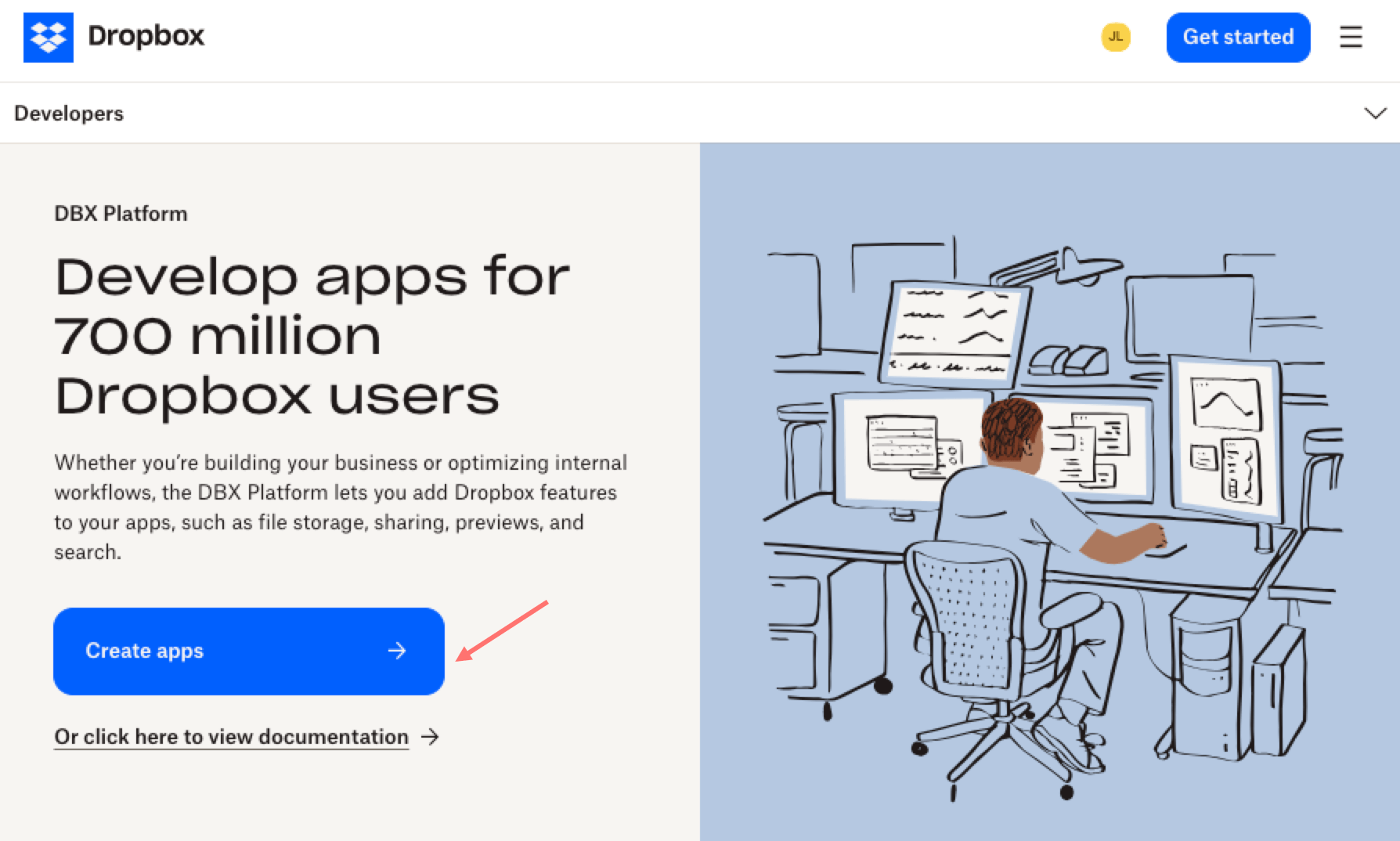 First, you need to access the link <https://www.dropbox.com/developers>.&#x20;