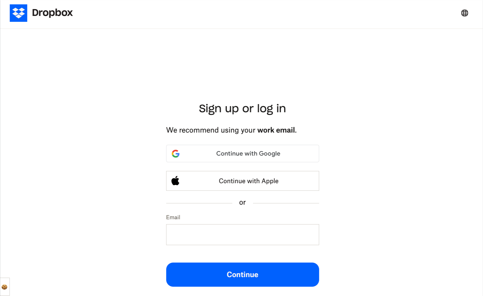 To get started, create a Dropbox account. If you already have an account, simply log in.