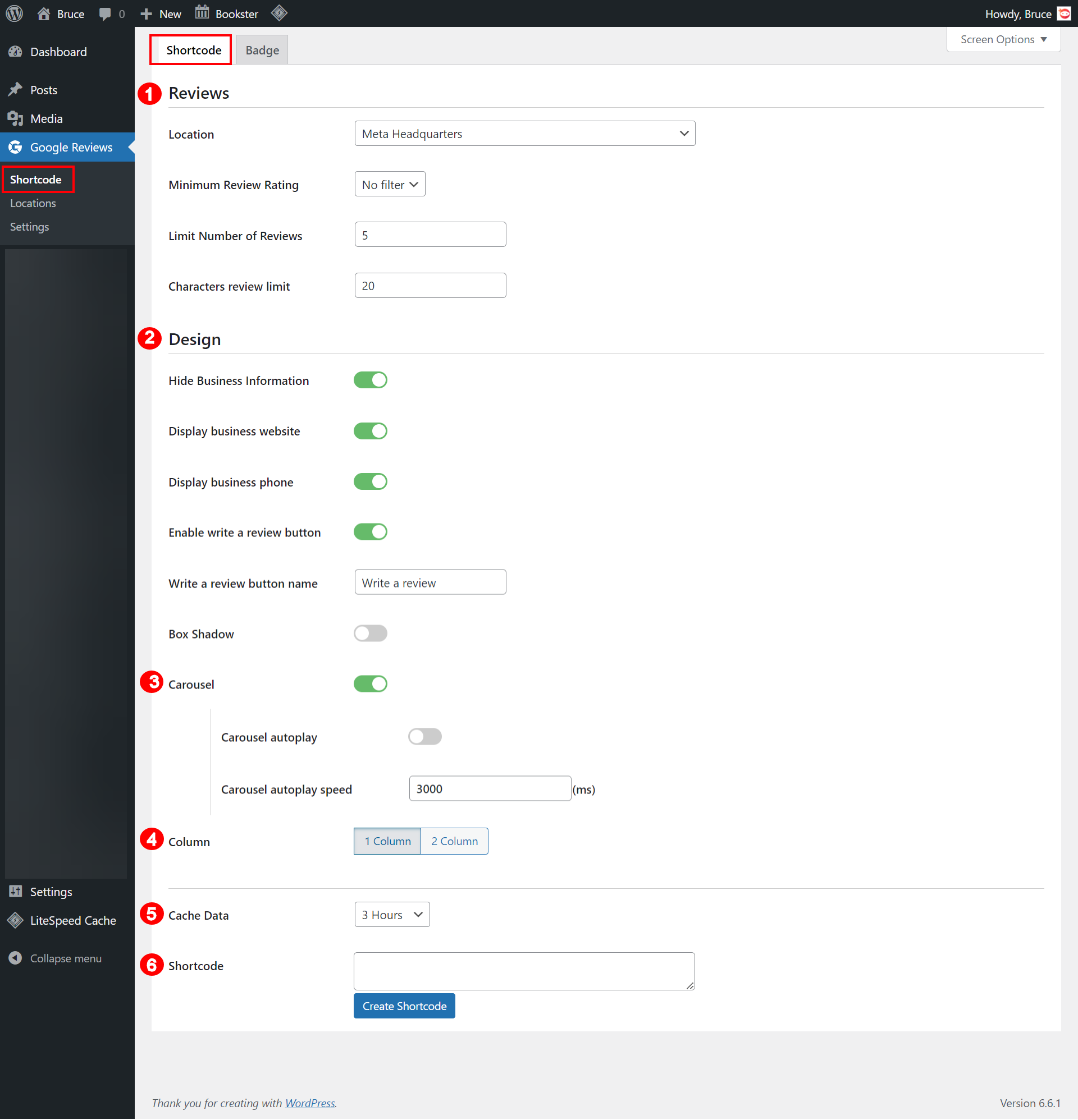The Shortcode Options tab of the Google Reviews plugin allows you to customize the display of Google Reviews on your website through the use of shortcodes.